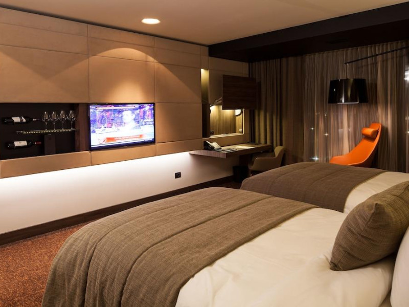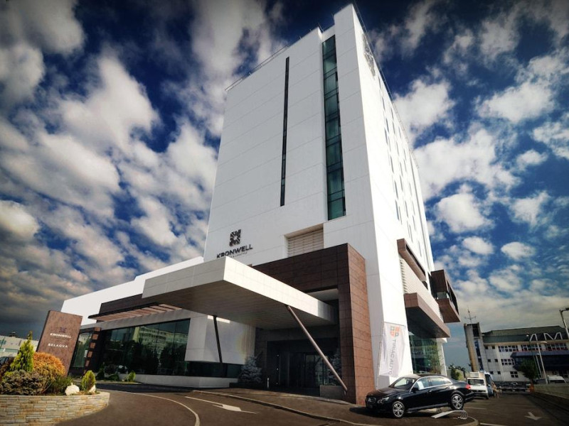 Located in the heart of Romania, in the multicultural top touristic destination of Brasov, guarded by the Carpathians and offering outdoor tourism activities in the Poiana Brasov ski resort, Kronwell invites you to style up your being away from home within a desirable concept. While being surrounded by fortified churches, touristic highlights and the castle witnessing the legend of Dracula, Brasov attracts travellers from all over the world to explore the mixture of unspoiled nature and contemporary urban life.Business room is the leading room category with generous 34 sqm of space and high-end technology such as Smart TV, media hub, free wi-fi, temperature and dimming lights control. This carefully designed accommodation also features an exclusive wine collection, rainforest shower, floor heating as well as complimentary luxury Zenology amenities. Velvetry bathrobe and sleepers and an evening turndown is provided as well as a state of the art king size bed with Serta Perfect Sleeper and hypo-allergenic linen for a good and healthy night sleep.Adagio restaurant with its famous Chef offers menus infused with novelty and creativity serving local and international cuisine.This is a modern building.LargeEach corner at Kronwell is designed to enhance refinement. Everything you see, touch and feel is carefully chosen to welcome you. Our harmonious environment with a warm intimate atmosphere will strike you with its elegance and precise outline. When leisure becomes lifestyle and business becomes pleasure within 81 luxurious rooms and 5 high tech modular meeting studios. Celebrating beauty elements in the 1500 sqm boutique BELAQVA Spa. Secured underground and ground-level parking with up to 80 parking lots and coach access. Tasting contemporary culinary delights, flavoured drinks within our restaurant, lounge and bar. Kids adventure with Happy Shark in the large playground under the care of dedicated staff. Exploring unspoiled nature and culture in Brasov surroundings ? outdoor tourism activities.This is a newly opened property - Feb 2013. Indoor pool will be available from June 2013.Datorita dinamicitatii domeniului disponibilitatea ofertelor se modifica de la un moment la altul. De aceea ofertele sunt valabile in limita locurilor disponibile. Agentia nu este responsabila pentru eventualele neconcordante care pot aparea intre informatiile privind tarifele si alte detalii din site si informatiile primite in agentie. In aceste cazuri vor avea prioritate, intotdeauna, informatiile primite in agentie.