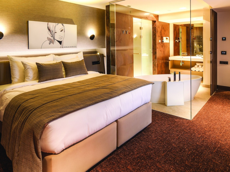 The 4-star superior Kronwell Brasov Hotel features a stylish à la carte restaurant, state-of-the art facilities, and free WiFi. Belaqva Spa and Wellness Center offers beauty therapies, a fitness studio, a sauna and an indoor pool, for a surcharge. All rooms are air-conditioned and tastefully furnished. They include a bathroom with a bathrobe and free toiletries, and a seating area with a flat-screen smart TV and a mini-bar. The rooms feature hypoallergenic pillows and bed linens, as well as wine collection and heated floors. Some rooms have hi-tech facilities such as iPad and HDTV. In the Adagio Restaurant culinary delights and flavored drinks are served, while guests can relax in the C-Bar after a day spent in the historic town. Couchette Travelerâs Bistro offers healthy menus with home-made, fresh products, and a blend of Italian, French and Asian cuisines. The BraÅov Council Square is 2.2 mi away and the Poiana Brasov Ski Resort is 9.3 mi from the property. Shuttle transfer to Poiana Brasov is available upon request, at an extra charge, an is subjected to availability.No special conditions apply for groups. WiFi is available in all areas and is free of charge. Free private parking is available on site (reservation is not needed). Pets are allowed on request. Charges may apply. Children of all ages are allowed. Children 3 and under stay for free when using an available crib. Children 8 and under stay for free when using an existing bed. People 3 and up stay for 250 lei per person, per night when using an available extra bed. Any type of extra bed or crib is upon request and needs to be confirmed by management. Additional fees are not calculated automatically in the total cost and will have to be paid for separately during your stay.Checkin Time: 14:00Checkin End Time: 00:00Checkout End Time: 12:00Hotel important information: Please inform Kronwell Brasov Hotel of your expected arrival time in advance. You can use the Special Requests box when booking, or contact the property directly using the contact details in your confirmation. Guests are required to show a photo ID and credit card upon check-in. Please note that all Special Requests are subject to availability and additional charges may apply. In response to the coronavirus (COVID-19), additional safety and sanitation measures are in effect at this property. Please note that this property accepts only small pets (up to 5 kg) and a cleaning fee per stay will be applied. For the extra beds fees, kindly note the propertys policy for Children and extra beds. Please note that room rates do not include access to the BELAQVA Spa and Wellness (indoor pool, fitness, thermarium), unless otherwise specified (fee: 12 EUR / guest/ day).Datorita dinamicitatii domeniului disponibilitatea ofertelor se modifica de la un moment la altul. De aceea ofertele sunt valabile in limita locurilor disponibile. Agentia nu este responsabila pentru eventualele neconcordante care pot aparea intre informatiile privind tarifele si alte detalii din site si informatiile primite in agentie. In aceste cazuri vor avea prioritate, intotdeauna, informatiile primite in agentie.