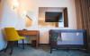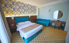 - camerele duble standard - Aceste camere cu design modern si vesel, sunt spatioase si confortabile, ideale pentru a te relaxa dupa o zi calduroasa pe plaja. Camerele sunt dotate cu un pat King size matrimonial si au o suprafata de 23mp. In aceste camere se poate adauga patut de bebelus (doar cu rezerare inainte).