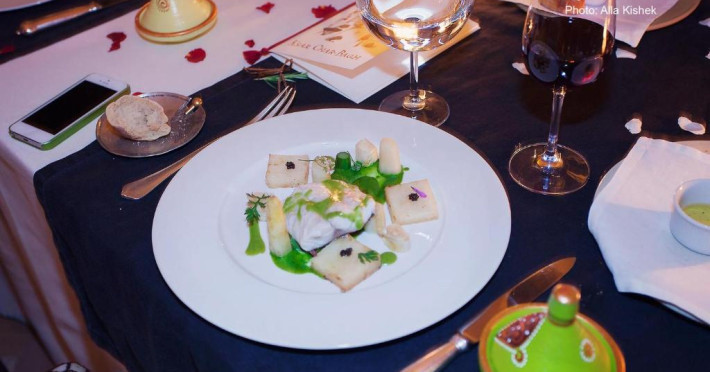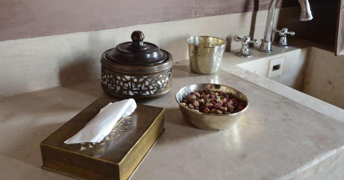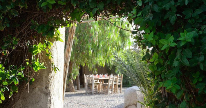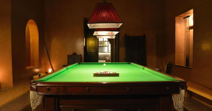 A different breakfast is served at the hotel every morning. There is a traditional Berber tent where guests can have tea. The restaurant served Moroccan and international food made from home-grown vegetables.