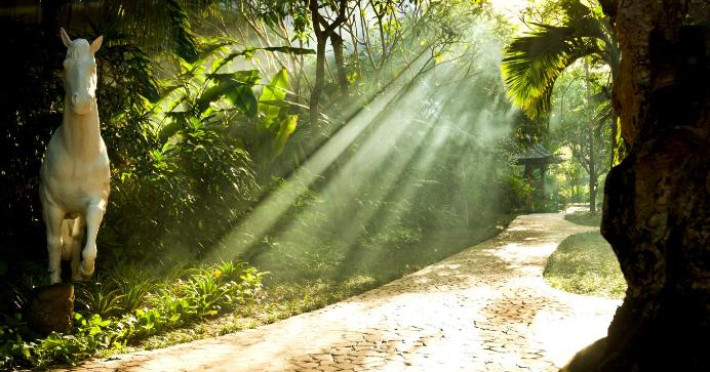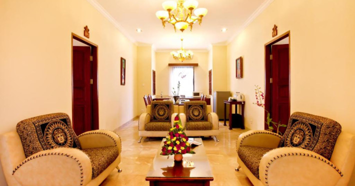 Bathed in warm light, air-conditioned rooms are equipped a satellite TV and a seating area. Other in-room comforts include a fridge, minibar and an electric kettle. Views of the lush greenery can be enjoyed from the private terraces or balconies.