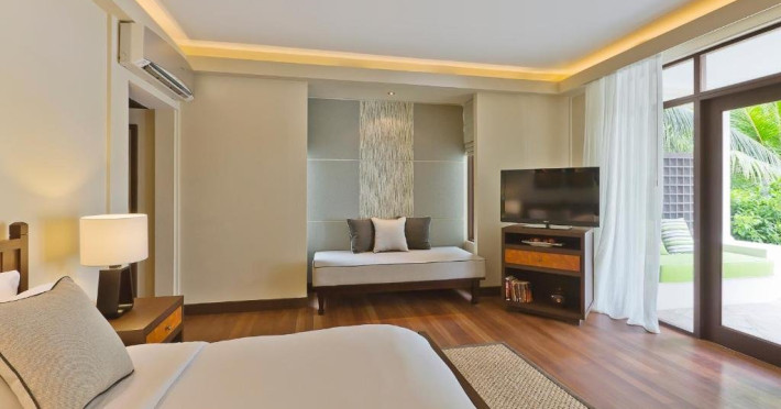 Dotari camere: Camerele si vilele luxoase au terase private cu vedere la plaja. Fiecare camera dispune de televizor cu cablu/satelit, canale de televiziune chinezesti, seif si birou de lucru. De asemenea, sunt furnizate frigider si facilitati pentru prepararea ceaiului/cafelei. Baile private includ cada si dus. Ca dotari suplimentare, se ofera o geanta de plaja, papuci si un fierbator electric.