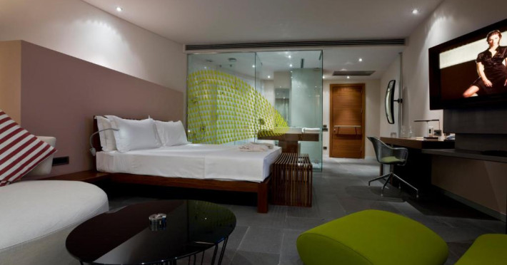 Camerele confortabile de la Kuum Hotel & Spa au pardoseală de gresie/ marmură, aer condiționat, Tv cu canale prin satelit și seif. Fiecare cameră dispune de mașină pentru preparare cafea sau ceai, fierbător și minibar. Unele camere au balcon cu vedere la mare. În camere există baie cu cadă sau duș ce are în dotare foehn și articole de toaletă gratuite. Curățenia in cameră se face zilnic.
