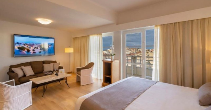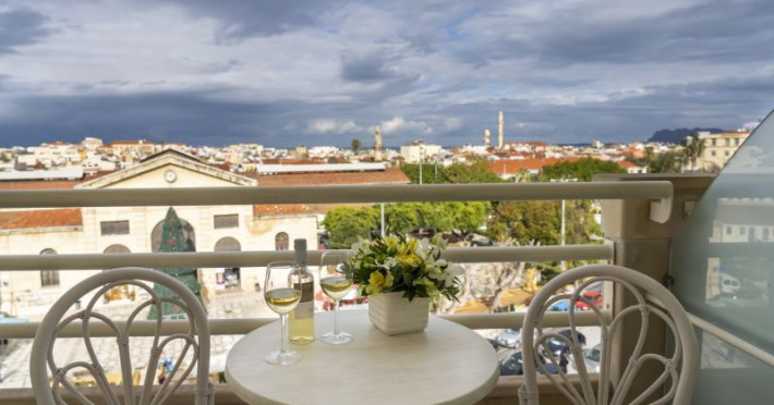 Majoritatea camerelor beneficiază de vedere panoramică la centrul vechi, Portul Venețian și Marea Cretei.