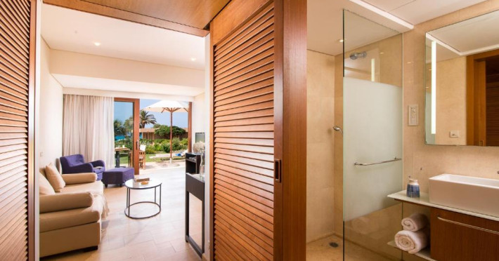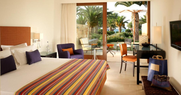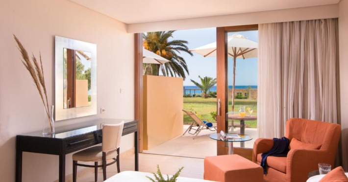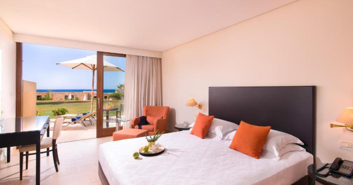 Camerele confortabile de la Kyknos Beach Hotel Bungalows au pardoseală de gresie/ marmură, aer condiționat, Tv cu canale prin satelit și seif. Oaspeții au la dispoziție serviciul de room service pentru a servi masa sau diverse băuturi. Camerele au balcon cu vedere la mare sau la piscină. În camere există baie cu cadă sau duș prevăzută cu foehn. Oaspeții au acces gratuit la serviciul Wi-fi în camere. Curățenia in cameră se face zilnic. Proprietatea oferă camere pentru familie cu o suprafață mai mare și un număr mai mare de paturi față de cele standard.