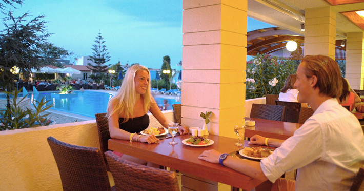 La Kyknos Beach Hotel Bungalows oaspeții au la dispoziție 2 restaurante unde pot savura mâncăruri delicioase, în stil bufet sau à la carte. Preparate din bucătăria internațională, grecească și mediteraneană așteaptă să fie degustate în fiecare zi la micul dejun, prânz și cină. Masa poate fi servită atât în interior, cît si în aer liber, pe terasă, în funcție de vreme. 2 baruri, dintre care unul la piscină, sunt disponibile cu o ofertă variată de băuturi răcoritoare și alcoolice. Pentru cei cu anumite nevoi de nutriție, Kyknos Beach Hotel Bungalows oferă meniuri pentru diete speciale.