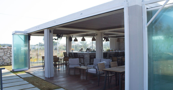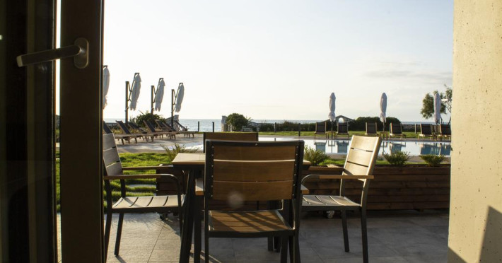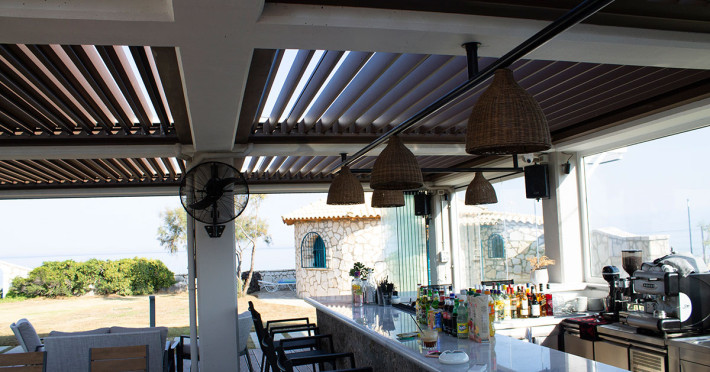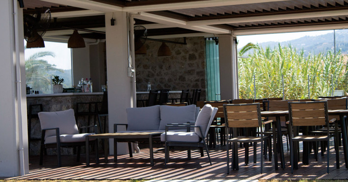 La proprietate există o cafenea care oferă cafea, băuturi și gustări. Masa poate fi servită atât în interior, cît si în aer liber, pe terasă, în funcție de vreme. Pentru cei care doresc să ia masa în natură, Kyma Suites pune la dispoziție o zonă de picnic.