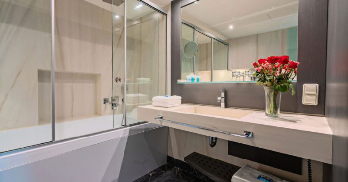 Fiecare cameră este dotată cu aer condiționat reglabil individual, încălzire, un balcon, o baie proprie cu uscător de păr, un frigider, un TV prin satelit / cablu, un radio, telefon și un seif ( contra cost ), acces wi-fi gratuit.