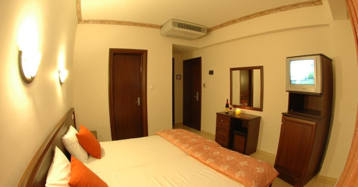 Facilitati camere: Hotelul dispune de 21 camere spatioase single, duble, triple, suite dispuse pe 3 etaje cu toate facilitatile unui hotel de 3*: seif, uscator de par, telefon, minibar, frigider, aer conditionat, baie cu dus, tv satelit, radio.