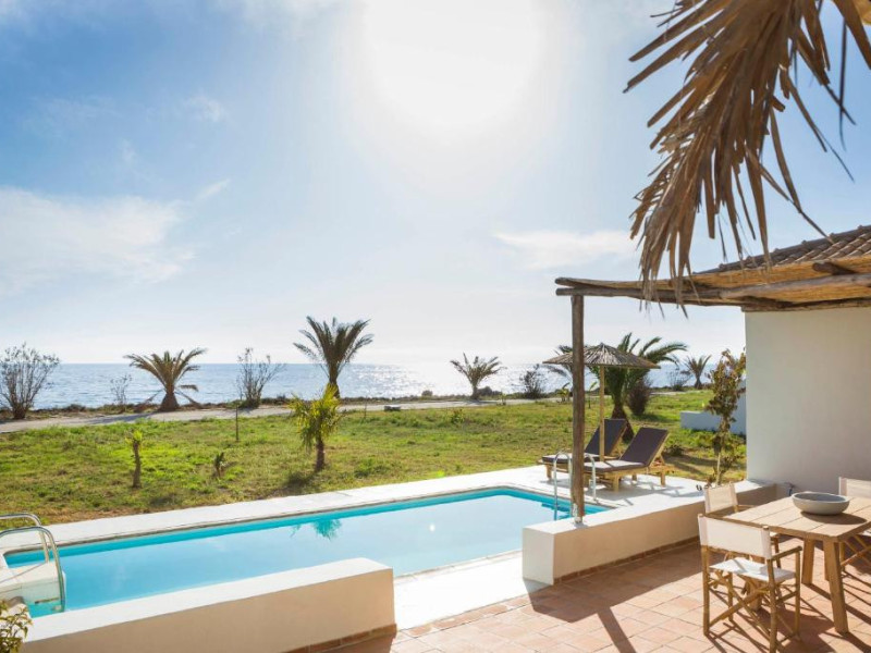 Kymata Bohemian Beach Resort este situat pe coasta de sud-vest a peninsulei Paliki, in partea de vest a insulei Kefalonia. Aceasta statiune unica pe plaja este un adevarat paradis pentru calatori, oferind facilitati de inalta clasa si servicii de ospitalitate autentica kefaloniana.Statiunea se afla la o distanta accesibila (fie printr-o plimbare, fie cu masina) de numeroase plaje de o frumusete extraordinara, precum plaja Kounopetra, Xi Beach si multe altele. Zona Kounopetra este destul de populara si ofera vizitatorilor o varietate de optiuni, mai ales in ceea ce priveste gastronomia si divertismentul. O gama larga de restaurante, baruri, cafenele, un parc acvatic si alte facilitati se afla, de asemenea, la o distanta mica, fie pe jos, fie cu masina, fata de complex.