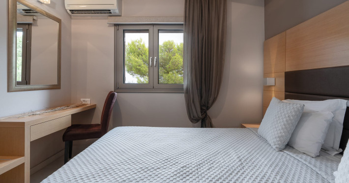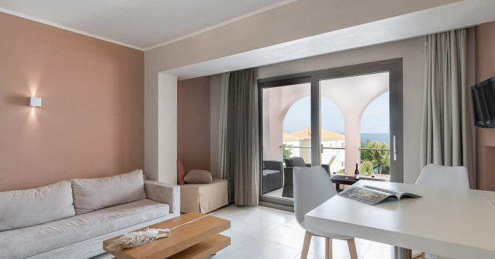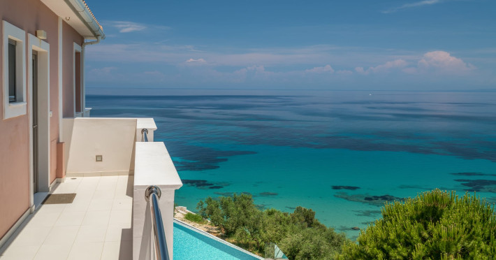 Located in one of the most scenic areas of Zakynthos, in Akrotiri, in a beautiful spot facing the Ionian Sea, Kefalonia Island and the shores of the Peloponnese, a newly-built luxurious set of suites and villas changes the standards of traditional holiday retreats in the verdant island of the Ionian Sea. Kymothoe Elite Suites and Villas – “a different class” is not just another complex in the wonderful “Fiore di Levante”, but a true architectural gem that combines luxury with hospitality and state-of-the-art craftsmanship with high-end guest services. Kymothoe Elite – Suites & Villas a totally eco-friendly set of luxurious suites which was inaugurated in 2011, redefines the term “luxurious accommodation”, by combining exquisite architectural design, refined interior and exterior decoration, personalized amenities, customized guest services and a peaceful and hospitable environment. Our newly launched Kymothoe Elite Villas, are here to expand the elite accommodation, supplemented by the equally excellent service from owners and staff, so that all our guests enjoy the most memorable holidays. Our main concern is to create the most ideal conditions for your stay, not only as far as the services and facilities are concerned, but also for the best acquaintance of the island and the discovery of its majestic sights and alternative activities. Kymothoe Elite Suites and Villas have the advantage of being located in an elevated idyllic spot, very close to Zakynthos’ port [only 6 kilometers], Zakynthos International Airport “Dionysios Solomos” [9 kilometers] and its largest and most popular central square-the place to see and be seen-Solomos Square [4 kilometers]. Thus, it is distant enough to enjoy the serenity of peaceful surroundings but also within easy reach from the most popular sights of the island, like Tsilivi beach, which is located just 2 kilometers away. T.B.R.N: 0428K124K0450701Datorita dinamicitatii domeniului disponibilitatea ofertelor se modifica de la un moment la altul. De aceea ofertele sunt valabile in limita locurilor disponibile. Agentia nu este responsabila pentru eventualele neconcordante care pot aparea intre informatiile privind tarifele si alte detalii din site si informatiile primite in agentie. In aceste cazuri vor avea prioritate, intotdeauna, informatiile primite in agentie.