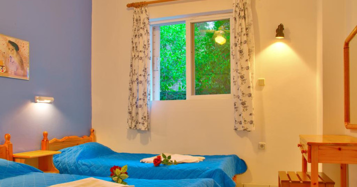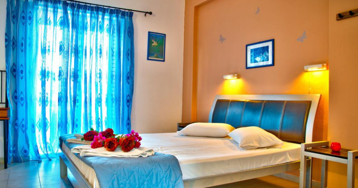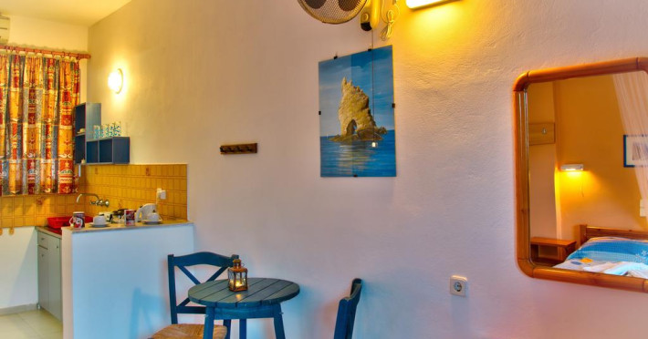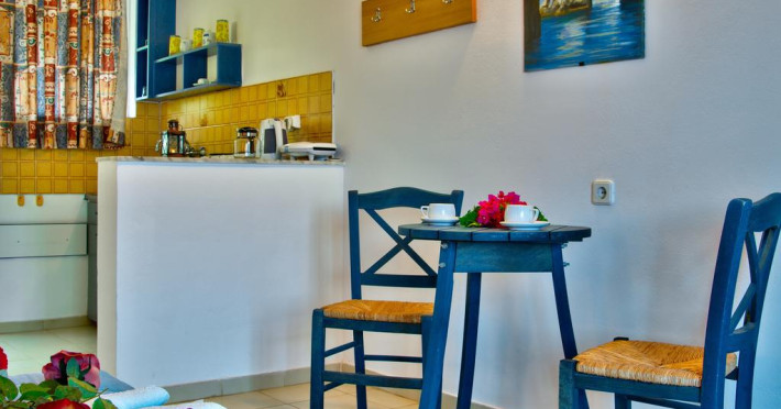 Camerele confortabile de la Kyprianos Apartments sunt dotate cu pardoseală de gresie/ marmură, aer condiționat, Tv și seif. În camere există baie cu cadă sau duș prevăzută cu foehn. Fiecare cameră oferă cană-fierbător și mașină pentru prepare cafea sau ceai. Oaspeții pot solicita serviciul de room service pentru a servi masa sau diverse băuturi. Unele camere au balcon cu vedere la grădină sau la piscină. Curățenia in cameră se face zilnic. Toate camerele spațioase de la Kyprianos Apartments au zonă de relaxare cu canapea, ceea ce oferă un plus de confort. Fiecare unitate de cazare include o chicinetă utilată cu frigider, plită de gătit și ustensile de bucătărie. Proprietatea oferă camere pentru familie cu o suprafață mai mare și un număr mai mare de paturi față de cele standard. Se pot rezerva de asemenea camere pentru nefumători.