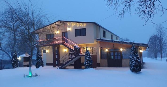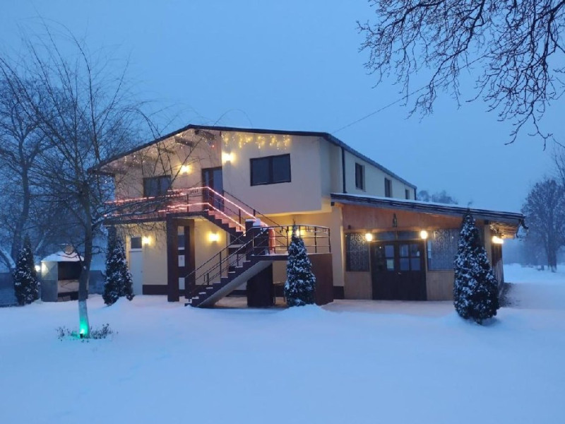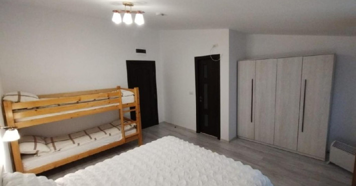 Proprietatea dispune de o curte generoasa unde va puteti relaxa sau juca jocuri ina er liber.