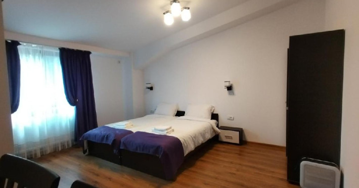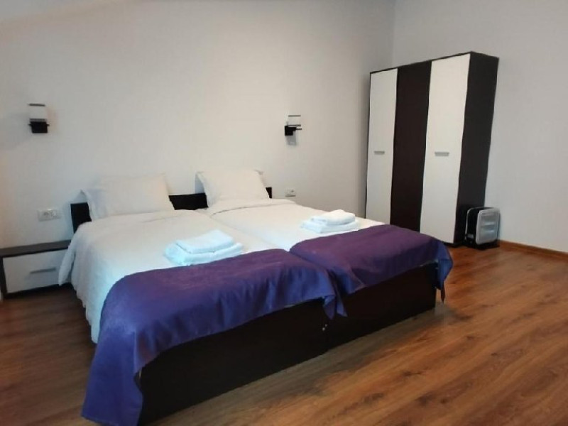 Camera dubla twin, cu o suprafata de 18 mp, 2 paturi, baie cu dus,uscator de par, minifrigider, TV, prosoape, AC, internet.