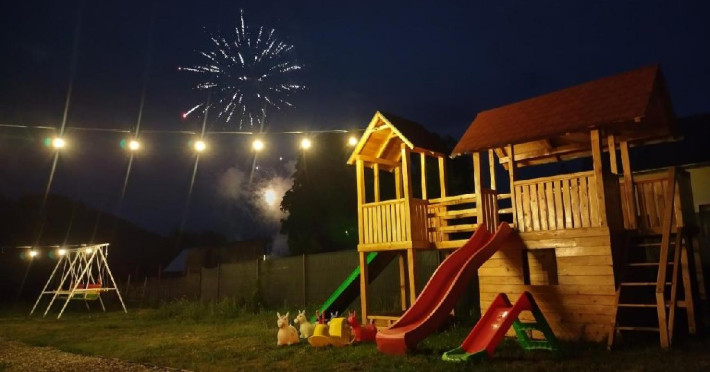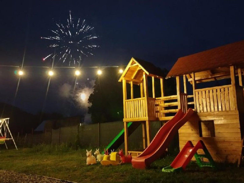 Loc de joaca special amenajat pt copii, gratar, bucatarie pt pregatirea mesei.