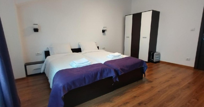 Camera dubla twin, cu o suprafata de 18 mp, 2 paturi, baie cu dus,uscator de par, minifrigider, TV, prosoape, AC, internet.
