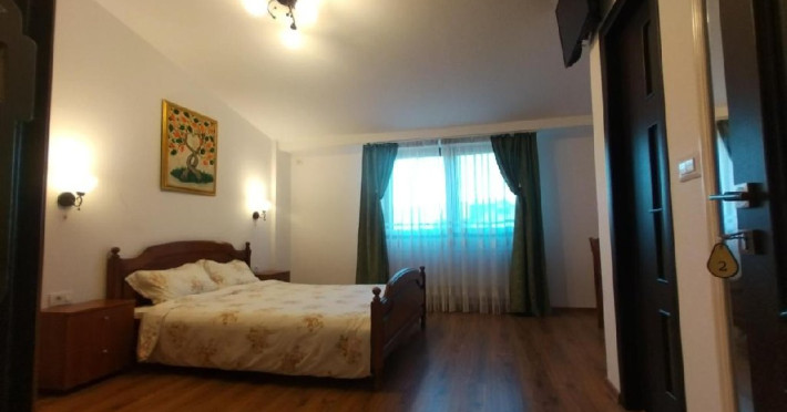 Camera dubla king deluxe, cu o suprafata de 21 mp, baie cu cada, uscator de par, minifrigider, TV, prosoape, AC, internet.