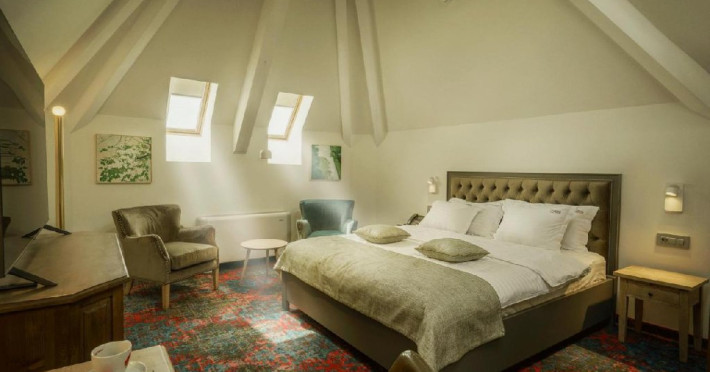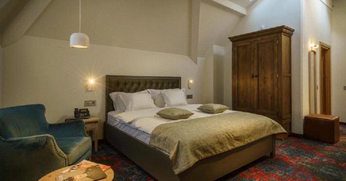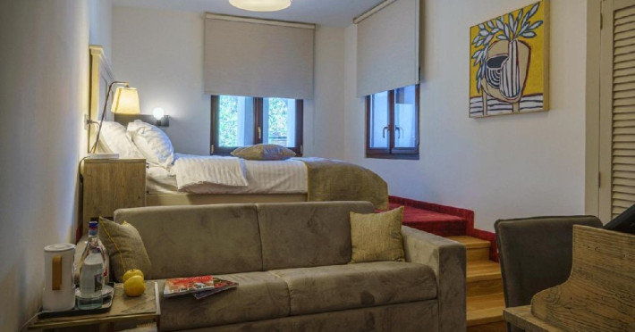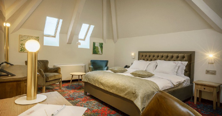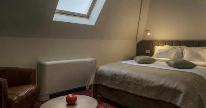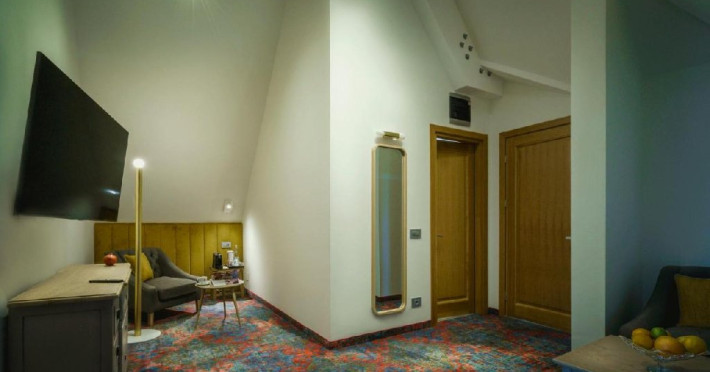 Apartamentul La Boheme (suprafata 36 mp) reflecta identitatea hotelului intr-un spatiu generos, destinat sa ofere confortul pe care il cauta orice turist. Mobilat elegant, intr-un stil boem adaptat preferintelor moderne, apartamentul invita oaspetii sa petreaca timp de calitate, intr-un cadru care se va ridica la nivelul asteptarilor. In plus, pozitionarea chiar la ultimul etaj confera un design deosebit si iluminare naturala suficienta pentru bunastarea oaspetilor.