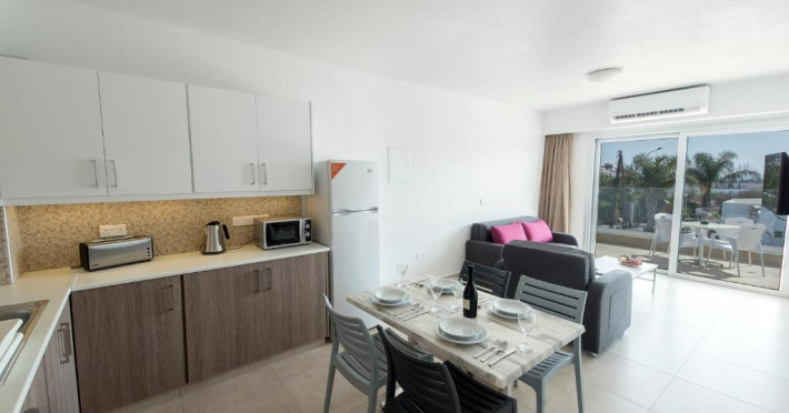 La o scurtă plimbare se găsesc restaurante, baruri si cluburi de noapte, iar la aproximativ 10 minute cu masina se află un parc acvatic. In zonă sunt disponibile diverse servicii, printre care inchirieri de mașini si biciclete. Aeroportul Internațional Larnaca se află la 45 de minute de mers cu mașina. Parcarea privată este gratuită.