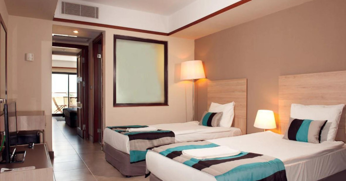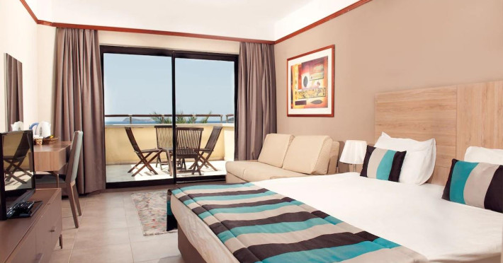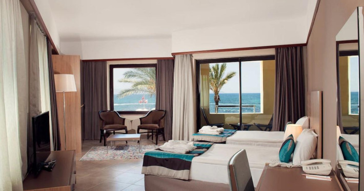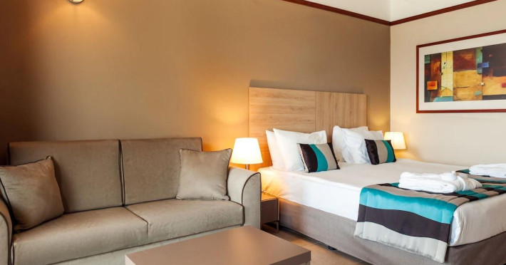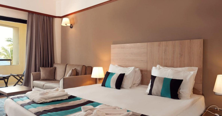 Camerele sunt spatioase, decorate in stil Mediterranean si sunt dotate cu TV, telefon, minibar (contra cost), safe (contra cost), baie, uscator de par, aer conditionat.