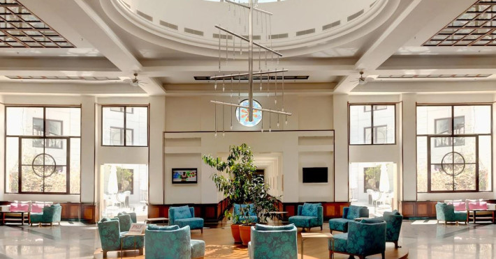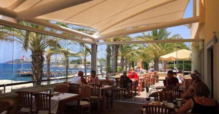 Intregul complex are un aer grecesc (totul este in alb si albastru), fiind inconjurat de gradini.