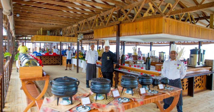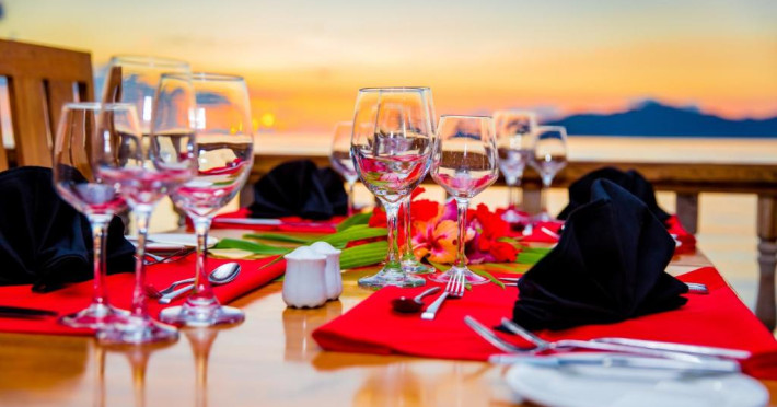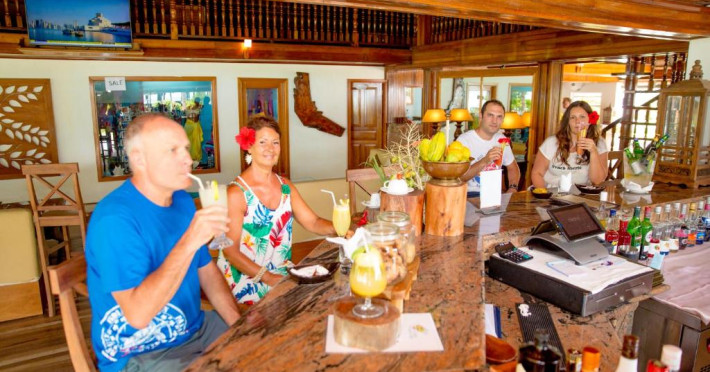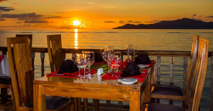 La La Digue Island Lodge oaspeții au la dispoziție un restaurant care servește mâncare à la carte. Preparate din bucătăria internațională așteaptă să fie degustate în fiecare zi la micul dejun, prânz și cină. 2 baruri, dintre care unul la piscină, sunt disponibile cu o ofertă variată de băuturi răcoritoare și alcoolice. În cadrul proprietății există și un snack bar care servește băuturi și gustări.