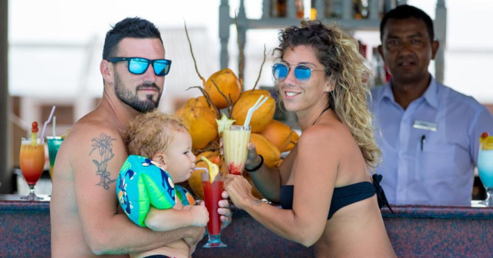 Copiii se pot distra la piscina special amenajată pentru ei.