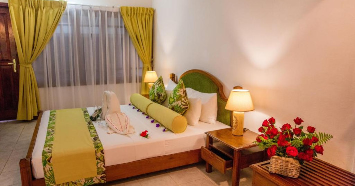Fiecare cameră dispune de mașină pentru preparare cafea sau ceai, fierbător și minibar. În camere există baie prevăzută cu foehn. Camerele confortabile de la La Digue Island Lodge sunt dotate cu pardoseală de gresie/ marmură, aer condiționat, Tv și seif. Oaspeții au acces gratuit la serviciul Wi-fi în camere. Curățenia in cameră se face zilnic. Proprietatea oferă camere pentru familie cu o suprafață mai mare și un număr mai mare de paturi față de cele standard.