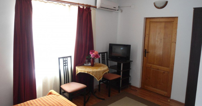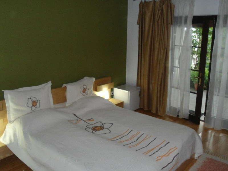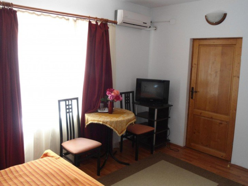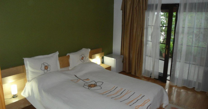 Camera dubla matrimoniala dispune de un pat matrimonial extra large (180x200cm) si vedere spre gradina, fiind amplasata la parterul pensiunii. Suprafata camerelor este de 18 mp.