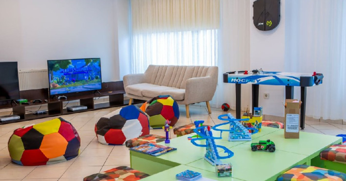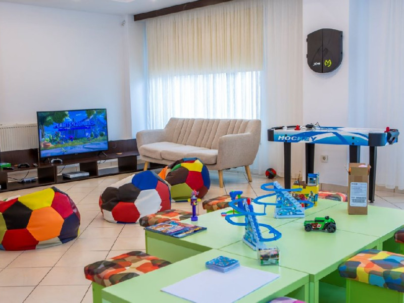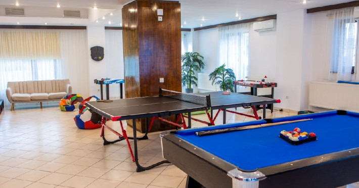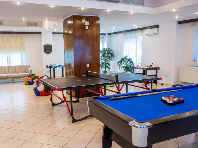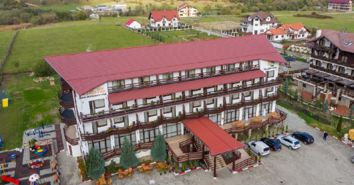 Hotelul dispune de 45 de spatii de cazare, restaurant, pub/bar, loc de joaca exterior si un kids club pentru toate varstele (tenis de masa, biliard, fotbal de masa, air hockey, darts, rummy, table, sah, dame etc.), parcare gartuita in limita locurilor disponibile