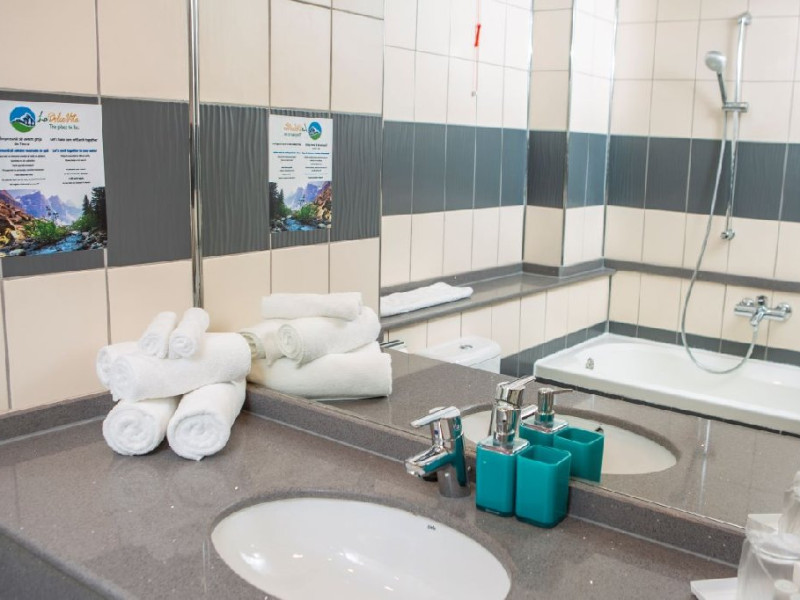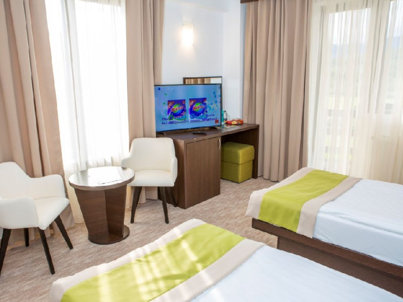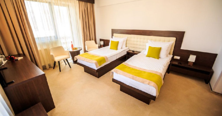 Recomandare: Camera dubla poate gazdui 2 adulti si 1 copil care doarme in pat cu adultii sau se poate adauga un pat suplimentar plient cu cadru metalic, contra cost. Paturile suplimentare sunt in limita disponibilitatii si se pot rezerva si achita doar la receptie, in momentul sosirii.