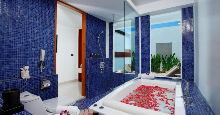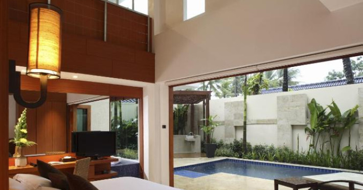 Decorate cu mobilier din lemn si cu ferestre a căror suprafată de sticlă este neintreruptă de elemente de tamplărie, camerele complexului au TV cu ecran plat si DVD player. Sunt prevăzute, de asemenea, cu minibar si facilităti pentru prepararea ceaiului/cafelei. Camerele selecte sunt dotate cu piscine private.