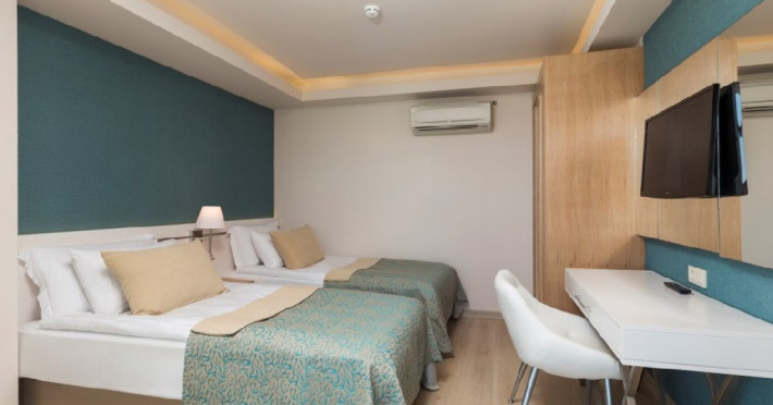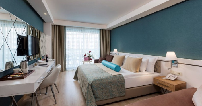 Descriere: Side La Grande Resort and Spa ofera cazare in orasul Side, wi-fi gratuit si o piscina in aer liber. Complexul pune la dispozitie o piscina in aer liber deschisa pe tot parcursul anului si un loc de joaca pentru copii. Oaspetii pot lua masa la restaurant si pot savura bauturi la bar.Localizare: Side La Grande Resort and Spa se afla la 5 km de orasul antic Side si de muzeul din Side. Aeroportul Antalya este situat la 50 km de unitate.