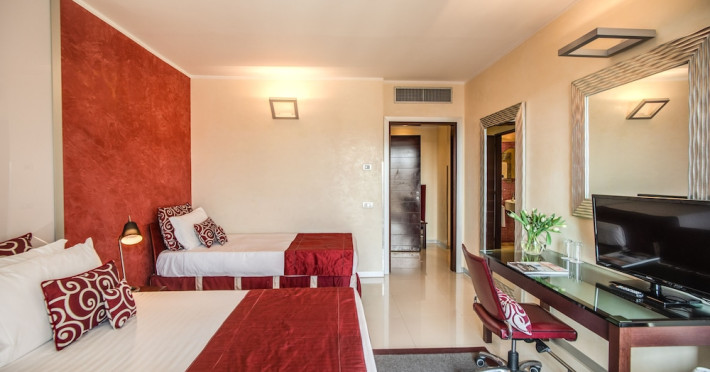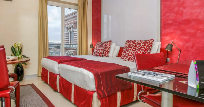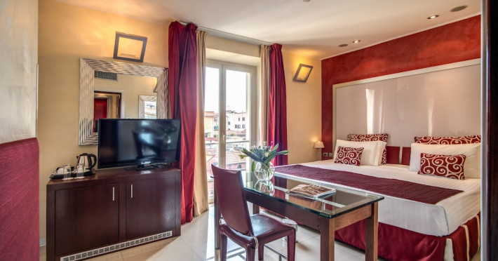 Take in the views from a rooftop terrace and make use of amenities such as complimentary wireless internet access and concierge services. Additional amenities at this hotel include wedding services, a television in a common area, and a banquet hall. Guests can catch a ride to nearby destinations on the area shuttle (surcharge).lt;stronggt;Property Locationlt;/stronggt;lt;pgt;With a stay at La Griffe Hotel, youapos;ll be centrally located in Rome, steps from Teatro dellapos;Opera di Roma and within a 5-minute walk of Piazza della Repubblica. This family-friendly hotel is 0.3 mi (0.4 km) from Palace of Expositions and 0.6 mi (0.9 km) from Mercati di Traiano Museo dei Fori Imperiali.lt;brgt; Distances are displayed to the nearest 0.1 mile and kilometer. lt;br /gt; lt;pgt;Via Nazionale - 0.1 km / 0.1 mi lt;br /gt; Quirinale - 0.1 km / 0.1 mi lt;br /gt; Teatro dellapos;Opera di Roma - 0.2 km / 0.1 mi lt;br /gt; Piazza della Repubblica - 0.3 km / 0.2 mi lt;br /gt; Via XX Settembre - 0.3 km / 0.2 mi lt;br /gt; Palace of Expositions - 0.4 km / 0.3 mi lt;br /gt; Palazzo Barberini - 0.6 km / 0.4 mi lt;br /gt; Via del Tritone - 0.7 km / 0.4 mi lt;br /gt; Piazza Barberini - 0.7 km / 0.4 mi lt;br /gt; Via Marsala - 0.7 km / 0.4 mi lt;br /gt; Basilica di Santa Maria Maggiore - 0.7 km / 0.4 mi lt;br /gt; Via Veneto - 0.7 km / 0.5 mi lt;br /gt; Quirinale Palace - 0.8 km / 0.5 mi lt;br /gt; Piazza Santa Maria Maggiore - 0.8 km / 0.5 mi lt;br /gt; Rinascente Flagship Store - Via del Tritone - 1 km / 0.6 mi lt;br /gt; lt;/pgt;lt;pgt;The nearest airports are:lt;br /gt;Ciampino Airport (CIA) - 15.1 km / 9.4 milt;br /gt; Fiumicino - Leonardo da Vinci Intl. Airport (FCO) - 30.4 km / 18.9 milt;br /gt; lt;/pgt;lt;pgt;lt;/pgt;lt;brgt; lt;stronggt;Roomslt;/stronggt;lt;pgt;Make yourself at home in one of the 123 air-conditioned rooms featuring LCD televisions. Your bed comes with down comforters and Egyptian cotton sheets. 42-inch Smart televisions with satellite programming provide entertainment, while complimentary wireless internet access keeps you connected. Bathrooms feature bathtubs or showers, complimentary toiletries, and bidets.lt;pgt; lt;stronggt;Dininglt;/stronggt;lt;pgt;Take advantage of the hotelapos;s 24-hour room service. Buffet breakfasts are available daily from 7:00 AM to 10:30 AM for a fee.lt;pgt; lt;stronggt;Business, Other Amenitieslt;/stronggt; lt;pgt;Featured amenities include a business center, limo/town car service, and dry cleaning/laundry services. Event facilities at this hotel consist of a conference center and a meeting room. A roundtrip airport shuttle is provided for a surcharge (available 24 hours).lt;pgt;Datorita dinamicitatii domeniului disponibilitatea ofertelor se modifica de la un moment la altul. De aceea ofertele sunt valabile in limita locurilor disponibile. Agentia nu este responsabila pentru eventualele neconcordante care pot aparea intre informatiile privind tarifele si alte detalii din site si informatiile primite in agentie. In aceste cazuri vor avea prioritate, intotdeauna, informatiile primite in agentie.