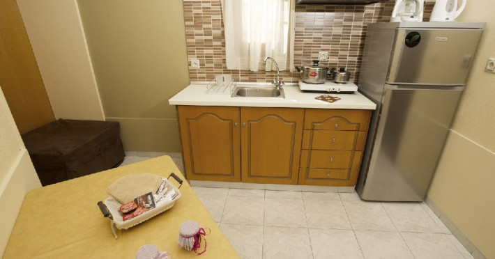 Bucatariecomplet utilata (frigider, aragaz electric, ceainic, filtru de cafea, ustensilede bucatarie);