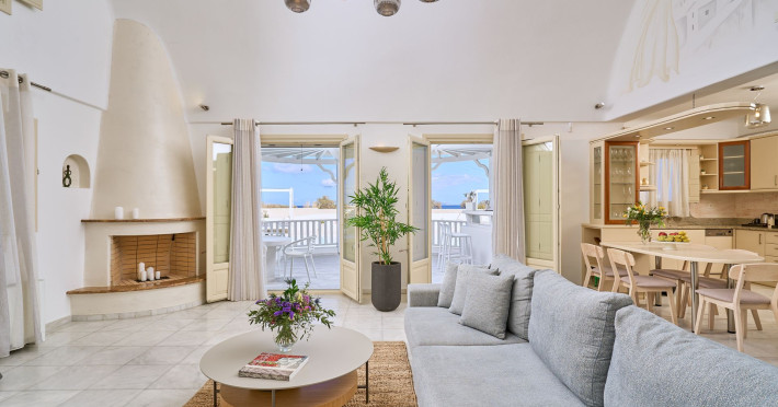 Santorini "La Maison" Private Villa #authenticsantorini Maximum occupancy: 10 People Spacious Living room Bedrooms: 4 Bathrooms: 2 Seperate WCs: 1 Fully Equipped Kitchen Private Pool & outdoor jacuzzi Gardens & playground Close to the Beach Looking for a private accommodation heaven for your summer escape in Santorini? How about an absolutely private villa with spacious indoors and sophisticated outdoors to enjoy precious time with your loved ones? Just a few steps from the beach and in the heart of a tranquil, beautiful area of Santorini, La Maison is the perfect private villa for families, couples in love or friends. Your Summer Private Villa in Greece !!! Why guests love La Maison! There are many reasons why La Maison Villa stands out as a place where our guests love to return to. The secluded and private location, the tasteful indoors and the quiet and relaxing surroundings give a home- like feeling! The swimming pool and the Jacuzzi enrich your relaxation ritual whereas the grand veranda is an irresistible spot! Families love it for the playgrounds and couples for its romantic allure. The proximity to the beach (and the airport) adds even more value and make your stay at La Maison Private Villa undoubtedly unique! External Living Designed for you, inspired by here. With locally sourced stone, regional whitewashed walls, and iconic sensory pool design, make this home groundbreaking. The Greek sun shines brightly on vineyards, cobbled streets, breathtaking beaches, rolling hills, and a friendly welcoming culture, all beautifully showcased by staying at La Maison Exclusive Residence. The secluded, enclosed coastal-view gardens and large outdoor pool (50m2), will prove enormously popular amongst all generations, especially with the mesmeric views and stunning seascapes as a backdrop. Lay out al fresco lunches and make like the Greeks, grazing on cold meats and olives between dips, before reclining to watch the dramatic Santorini sunset unfold with a G&T from the pool bar, on hand by laying at the sun loungers. Little ones are sure to have hours of fun with their own ‘Outdoor Playground’, and the sensory swimming pool to splash about in until well past bedtime. Making the most of the coastal location, an ocean-facing terrace offer mesmerising scenery for al fresco dining by the fully equipped BBQ, balmy in summer for celebrated dinning. Pets are more than welcome with prior notice, in our property. For the ones who wish to keep up with their fitness lifestyle, you can go jogging on the beach. Internal Living Individually crafted to frame, floor-to-ceiling-white will open up to views of endless blue, pouring light into every corned of your interior. Sleek design accents will weave through every space, from statement fittings to the finest contemporary Cycladic comforts, La Maison interior is more than a masterpiece of design, it is the perfect heaven to bring family and friends together. The 3 bedrooms and 1 studio dispatch across the ground level for ultimate privacy, as well as promises guests a revitalising stay to renew body, mind and soul. The Exclusive Villa comfortably accommodate up to 10 guests in its three bedrooms and one studio. The bedrooms are effortlessly and elegantly furnished promising a blissful night's sleep after the day's busy adventures. The abundance of space at the flow to light-filled living room is price for entertaining, with a fully-equipped, party-ready kitchen enriched with an indoor dinning spot for culinary wonders. The living room features a fireplace and 50’ smart TV for movies o’clock or a cosy corner to read your holiday book overlooking the blues. Reverse level living brings those inside close to the elements, with panoramic pool views and plenty of space to unfurl. An extra WC is available next to the living room area. Three bedrooms lay on this floor, one with a twin bed 2 x (0.90 x 2.00) and Two more bedrooms with a king size bed (1.80 x 2.00) each. The three bedrooms have at their disposal another bathroom with a walk in shower & a jacuzzi for those who wish to relax after a day of exploration. A stand alone master studio, that can sleep up to 4 guests, is an idillic spot for the teenagers of the group or to be used by one of the families who seek a bit of extra privacy. Featuring an additional living space with a kitchenette, two king size beds (1.80 x 2.00) and a separate bathroom with shower, offering immaculate attention to details. With immaculate attention to detail, this unique Villa is the dreamiest of couples’s or family with a baby ( baby cot & high chair are available) and made to offer the ultimate comfort and relaxation for up to 10 guests. Practicalities There is secured parking space inside the Villa’s premises for two cars, as well as an additional free parking space outside the Villa’s premises for more cars. The property is well-equipped with all the mod cons; Fridge with freezer, Electric stove with oven, Espresso machine & Frappe machine, Microwave, Dishwasher, Iron & Board, Hair dryers and an open plan fully equipped kitchen! La Maison Private Villa in Detail: Main house Living room Fully equipped kitchen 2 double beds 1 twin bed bedroom 1 bathroom with indoor Jacuzzi and shower 1 WC Open Studio 2 double beds 1 bathroom with bathtub 1 fully equipped kitchenette The Bedrooms of La Maison Villa Breakdown Main House: Bedroom 1: 2 single beds Bedroom 2: 1 extra-large double bed Bedroom 3: 1 extra-large double bed Open Studio: Bedroom 4: 2 double beds The outdoors of La Maison Villa Outdoor swimming pool &Jacuzzi (Not Heated) Private terrace & Alfresco dining Gardens with grass, olive trees, colorful flowers and plants, ideal place for children Children Playground Sun beds and Umbrellas Outdoor furnished lounge Outdoor barbeque Private chapel Private indoor parking The "La Maison" Private Villa experiences do not stop at the inviting facilities of your summer home in Santorini. Actually, the experience starts from the