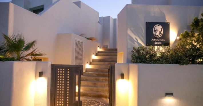 La Maltese Estate se află in localitatea Imerovigli din regiunea Cicladele, la 1,7 km de Muzeul de Arheologie din Santorini și la 11 km de Portul din Santorini, și include un bar. Acest hotel de 5 stele oferă room-service și un serviciu de concierge. Proprietatea pune la dispoziție o recepție deschisă non-stop, servicii de transport de la/la aeroport, un lounge comun și WiFi gratuit in intreaga proprietate.