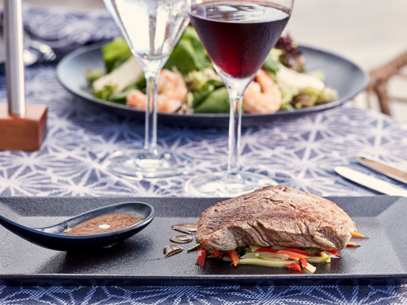 The hotel features two gourmet restaurants serving authentic Mediterranean fare, serving fresh local produce, certified organic products, authentic Cretan delicacies and macrobiotic culinary treasures. Buffet meals include vegetarian and healthy food options. Breakfast and lunch baskets available (24h notification required)Several ingredients are organically produced in our own farm.