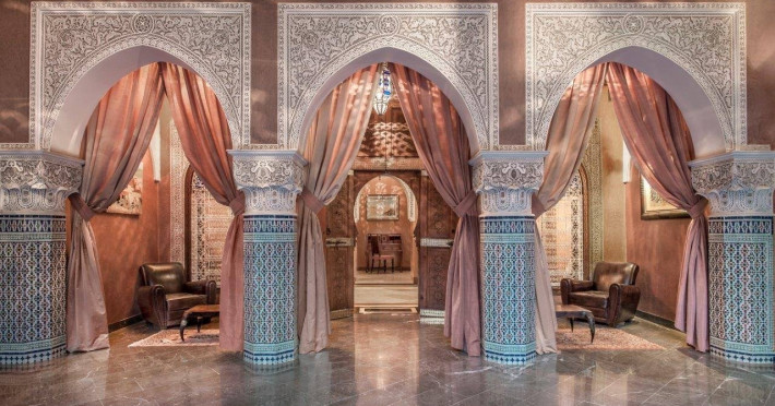 This outstanding hotel boasts a stunning setting in Marrakech, lying just a 10 minutes walking distance from Jemaa El Fna Square. The hotel is located within easy access of a host of mesmerising attractions in this captivating city. The hotel affords guests an insight into the rich culture and history of the surroundings. The hotel enjoys a delectable architectural style, inviting guests into the luxurious surroundings of the interior. The guest rooms are exquisitely appointed, providing a cocoon of peace and serenity in which to indulge in the ultimate comfort and relaxation. This magnificent hotel enjoys a charming interior design, embodying the essence of Moroccan style. The hotel provides a wide range of exemplary facilities, meeting the needs of discerning business and leisure travellers.This outstanding hotel boasts a stunning setting in Marrakech, lying just a 10 minutes walking distance from Jemaa El Fna Square. The hotel is located within easy access of a host of mesmerising attractions in this captivating city. The hotel affords guests an insight into the rich culture and history of the surroundings. The hotel enjoys a delectable architectural style, inviting guests into the luxurious surroundings of the interior. The guest rooms are exquisitely appointed, providing a cocoon of peace and serenity in which to indulge in the ultimate comfort and relaxation. This magnificent hotel enjoys a charming interior design, embodying the essence of Moroccan style. The hotel provides a wide range of exemplary facilities, meeting the needs of discerning business and leisure travellers.