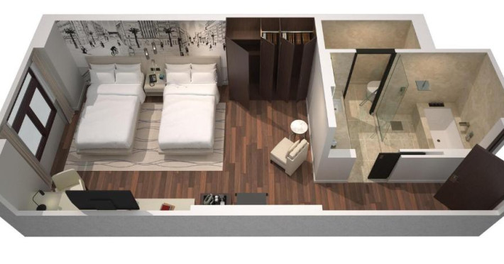 Camerele sunt spațioase și decorate intr-un stil urban luxos și relaxat, cu mobilier elegant in culori neutre, combinat cu accente artistice contemporane. Băile au blat din marmură luxos, cadă de sine stătătoare și cabină de duș, oferind spațiul ideal pentru relaxare sau ingrijire cu stil.