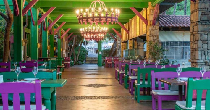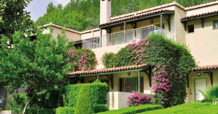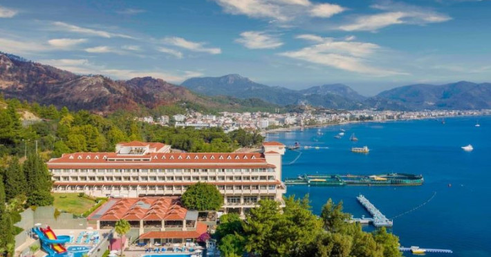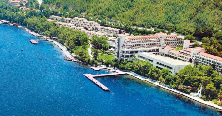 Construit pe Costa Marii Egee este situat langa plaja si inconjurat de paduri de pini.