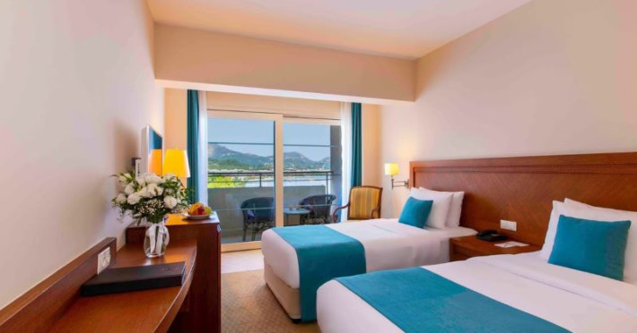 Hotelul pune la dispozitia oaspetilor sai restaurant principal, restaurante a-la-carte, lobby bar, bar la piscina, bar pe plaja, crama, piscina si piscina cu tobogane, fitness, centru SPA, baie turceasca, sauna, baie de aburi, wi-fi, rent-a-car, spalatorie, coafor, doctor, parcare, sezlonguri si umbrela, prosoape pentru piscina, teren de tenis, loc de joaca pentru copii, mini club pentru copii, baby cot (la cerere), baby sitter.