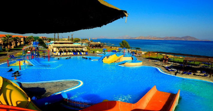 Locatie: Hotelul Labranda Marine Aquapark Resort se afla in insula Kos si este perfect pentru familile cu copii, oferind multe activitati si experiente de neuitat atat pentru micii oaspetii cat si pentru parintii lor.In timp ce copii (de la mic la mare) au parte de diferite activitati, adultii se pot relaxa la Lotus Poolside Bar (doar pentru adulti) sau se pot destinde la Spa-ul hotelului.