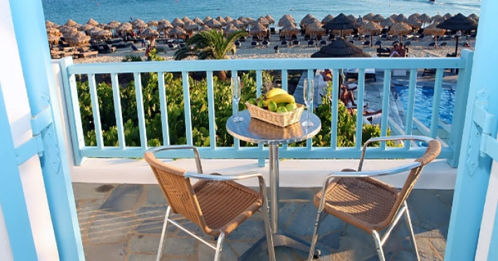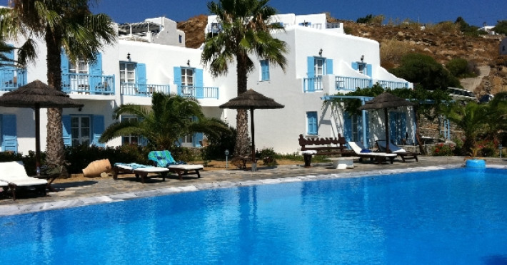 Hotelul este situat la o distanta de mai putin de 10 minute pana la aeroport, la cateva minute de plajele Agrari, Paraga si Portul Nou din Mykonos, si la doar 20 de minute de mers pe jos de plaja Paradise.