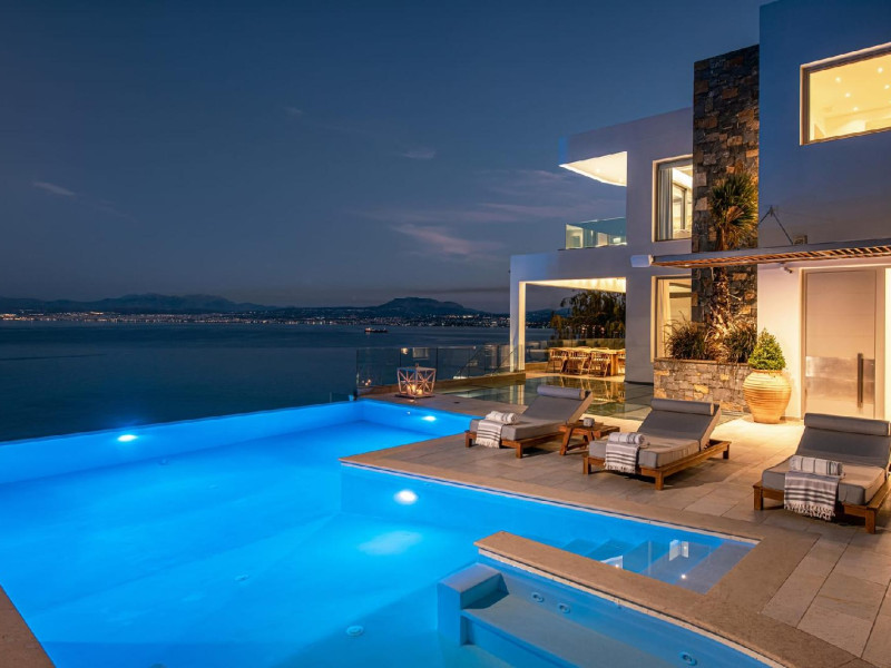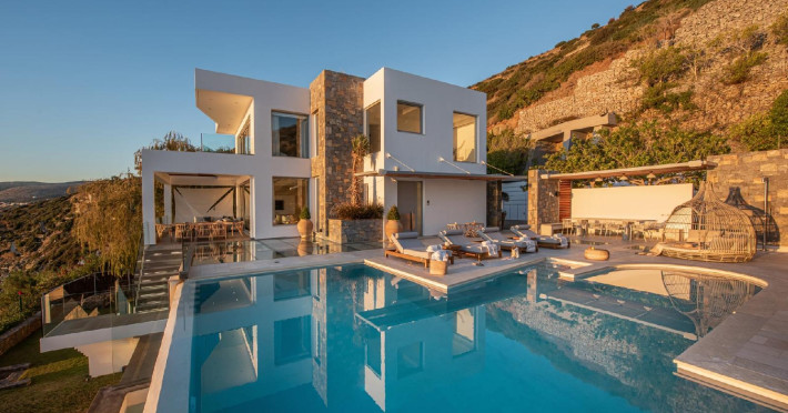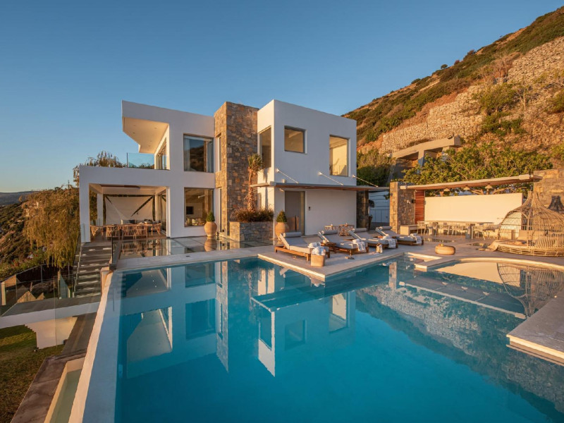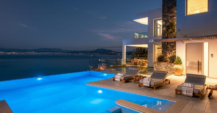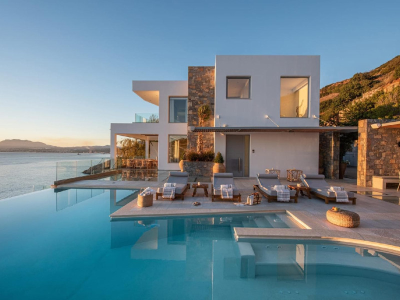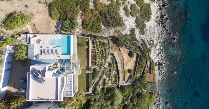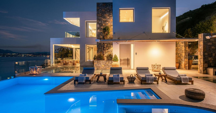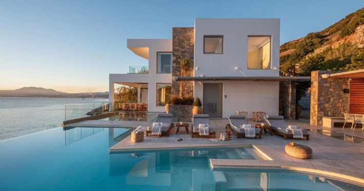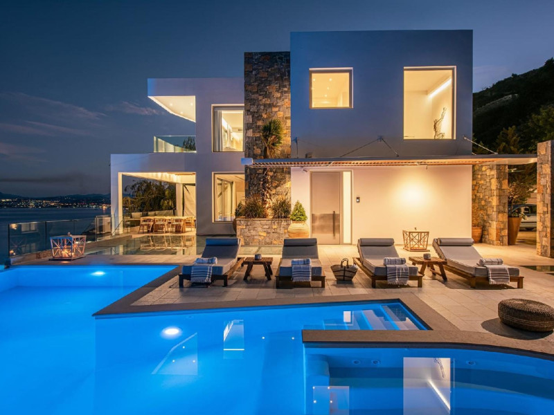 Lady Sea is a 6 Bedroom Sea View Villa in Palaiokastro, Crete, which unfolds in three levels and blends wisely into the beautiful Heraklion landscape, offering complete privacy and impeccable sea views to its guests. It is an ideal hideaway to unwind while discovering Crete; an island where nature, history, and heart-warming hospitality meet. All interior and exterior spaces of the Villa are outlined in dialogue with the impressive sea views, creating indulging relaxing areas that celebrate the outgoing Mediterranean lifestyle. Built on an approximately 2,000 m2 plot, the Villa has an independent entrance, while an indoor elevator and outdoor staircase connect the different levels. Max Capacity: 12 – 14 (Max Adults 12) Villa’s Square Meters: 496 m2 (2,000 m2 plot) Villa’s Square Meters with Outdoors: 2.350 m2 Three Floors: connected by an indoor elevator and staircase. There is an outdoor staircase connected First and Second Levels Bedrooms: 6 Bedrooms & 2 extra beds Bathrooms: 7 full bathrooms and 1 WC (6 ensuite bathrooms with showers, the master bedroom has shower & bathtub) Large Infinity Swimming Pool: 50m2 with built-in jacuzzi Private secure open parking Indoor Elevator Direct Access to a Private Sandy BeachLady Sea is a 6 Bedroom Sea View Villa in Palaiokastro, Crete, which unfolds in three levels and blends wisely into the beautiful Heraklion landscape, offering complete privacy and impeccable sea views to its guests. It is an ideal hideaway to unwind while discovering Crete; an island where nature, history, and heart-warming hospitality meet. All interior and exterior spaces of the Villa are outlined in dialogue with the impressive sea views, creating indulging relaxing areas that celebrate the outgoing Mediterranean lifestyle. Built on an approximately 2,000 m2 plot, the Villa has an independent entrance, while an indoor elevator and outdoor staircase connect the different levels. Max Capacity: 12 – 14 (Max Adults 12) Villa’s Square Meters: 496 m2 (2,000 m2 plot) Villa’s Square Meters with Outdoors: 2.350 m2 Three Floors: connected by an indoor elevator and staircase. There is an outdoor staircase connected First and Second Levels Bedrooms: 6 Bedrooms & 2 extra beds Bathrooms: 7 full bathrooms and 1 WC (6 ensuite bathrooms with showers, the master bedroom has shower & bathtub) Large Infinity Swimming Pool: 50m2 with built-in jacuzzi Private secure open parking Indoor Elevator Direct Access to a Private Sandy Beach