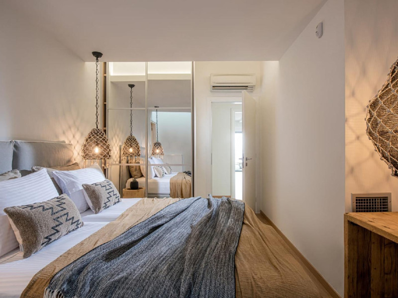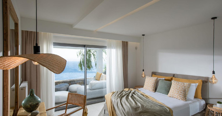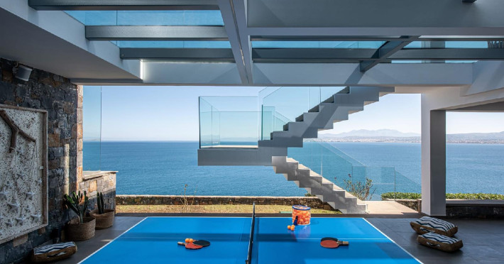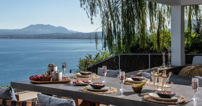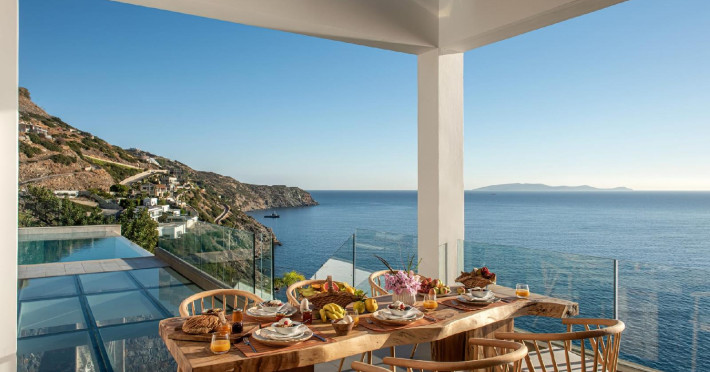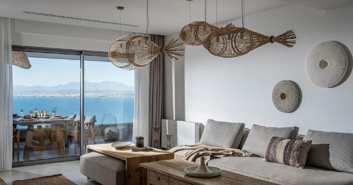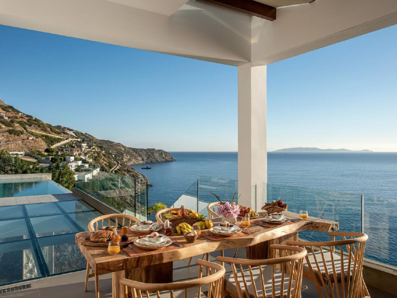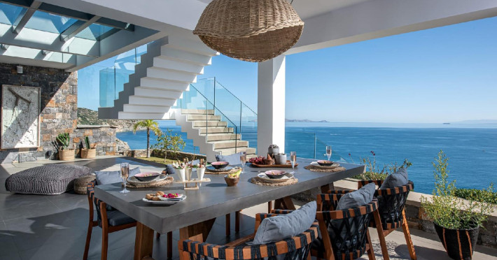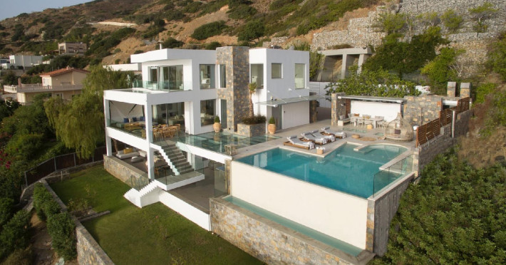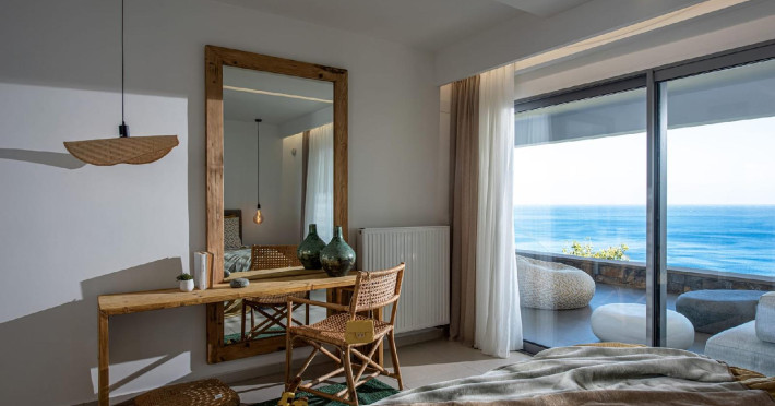 Lady Sea is a 6 Bedroom Sea View Villa in Palaiokastro, Crete, which unfolds in three levels and blends wisely into the beautiful Heraklion landscape, offering complete privacy and impeccable sea views to its guests. It is an ideal hideaway to unwind while discovering Crete; an island where nature, history, and heart-warming hospitality meet. All interior and exterior spaces of the Villa are outlined in dialogue with the impressive sea views, creating indulging relaxing areas that celebrate the outgoing Mediterranean lifestyle. Built on an approximately 2,000 m2 plot, the Villa has an independent entrance, while an indoor elevator and outdoor staircase connect the different levels. Max Capacity: 12 – 14 (Max Adults 12) Villa’s Square Meters: 496 m2 (2,000 m2 plot) Villa’s Square Meters with Outdoors: 2.350 m2 Three Floors: connected by an indoor elevator and staircase. There is an outdoor staircase connected First and Second Levels Bedrooms: 6 Bedrooms & 2 extra beds Bathrooms: 7 full bathrooms and 1 WC (6 ensuite bathrooms with showers, the master bedroom has shower & bathtub) Large Infinity Swimming Pool: 50m2 with built-in jacuzzi Private secure open parking Indoor Elevator Direct Access to a Private Sandy BeachLady Sea is a 6 Bedroom Sea View Villa in Palaiokastro, Crete, which unfolds in three levels and blends wisely into the beautiful Heraklion landscape, offering complete privacy and impeccable sea views to its guests. It is an ideal hideaway to unwind while discovering Crete; an island where nature, history, and heart-warming hospitality meet. All interior and exterior spaces of the Villa are outlined in dialogue with the impressive sea views, creating indulging relaxing areas that celebrate the outgoing Mediterranean lifestyle. Built on an approximately 2,000 m2 plot, the Villa has an independent entrance, while an indoor elevator and outdoor staircase connect the different levels. Max Capacity: 12 – 14 (Max Adults 12) Villa’s Square Meters: 496 m2 (2,000 m2 plot) Villa’s Square Meters with Outdoors: 2.350 m2 Three Floors: connected by an indoor elevator and staircase. There is an outdoor staircase connected First and Second Levels Bedrooms: 6 Bedrooms & 2 extra beds Bathrooms: 7 full bathrooms and 1 WC (6 ensuite bathrooms with showers, the master bedroom has shower & bathtub) Large Infinity Swimming Pool: 50m2 with built-in jacuzzi Private secure open parking Indoor Elevator Direct Access to a Private Sandy Beach