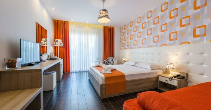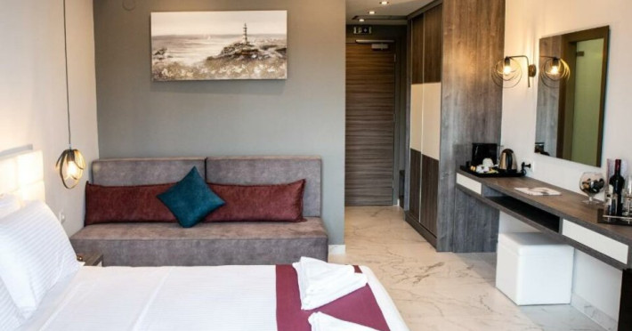 Lagaria Hotel is a seamless blend of a well-structured tourist facility, contemporary opulence, timeless Greek aesthetics, and genuine hospitality. The recently unveiled four-star Lagaria Hotel Apartments, infused with a fresh 2020 essence, embodies sophistication evident in its modern furnishings and vibrant color palette. Every hue chosen for the rooms wasnt coincidental; instead, it harmonizes with the hotels modern decor, taking into account the colors and style found in the traditional settlement of Afitos. Nowhere else can one encounter such an exquisite amalgamation of colors adorning the rooms, corridors, halls, and both indoor and outdoor communal areas. Our utmost priority revolved around ensuring that both the construction and decor seamlessly blended functionality with comfort. Lagaria Hotel epitomizes a fusion of contemporary elegance and historical charm, offering guests an unparalleled experience infused with warmth and convenience. ROOMS: Deluxe 2 bedroom apartment with Balcony 1-6 pax, max 6 adults Deluxe Attic Room, without Balcony 1-2 pax, max 2 adults Deluxe Room for 3 persons, with Balcony 1-3 pax, max 3 adults Deluxe Room, with Balcony 1-2 pax, max 2 adults Deluxe Suite 1-4 pax, max 2 adults Economy Room without Balcony 1-2 pax, max 2 adults Quadruple Attic Room without Balcony 1-4 pax, max 4 adults Quadruple Room with Balcony 1-4 pax, max 4 adults Standard Room with Balcony 1-2 pax, max 2 adults Superior Room with Balcony 1-2 pax, max 2 adults Superior Triple with Balcony 1-3 pax, max 3 adults Triple attic without balcony 1-3 pax, max 2 adults Triple Room with Balcony 1-3 pax, max 3 adultsDatorita dinamicitatii domeniului disponibilitatea ofertelor se modifica de la un moment la altul. De aceea ofertele sunt valabile in limita locurilor disponibile. Agentia nu este responsabila pentru eventualele neconcordante care pot aparea intre informatiile privind tarifele si alte detalii din site si informatiile primite in agentie. In aceste cazuri vor avea prioritate, intotdeauna, informatiile primite in agentie.