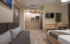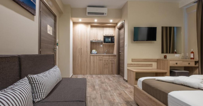 The hotel offers reception, snack bar, café, parking, playground and car and bike rental services. All the rooms have balcony, hairdryers, flat screen TVs, mini-bars, safe boxes, etc. The hotel offers also room for disabled persons.