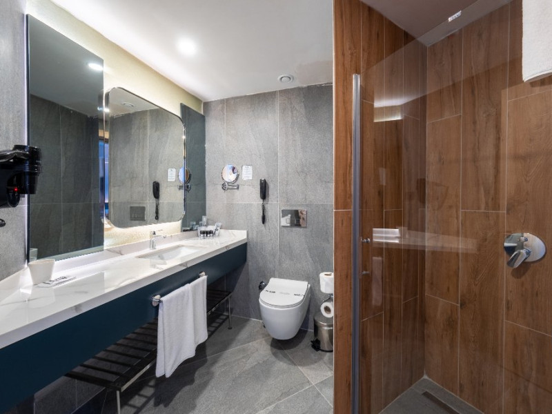 Dotari camere: Hotelul dispune de camere intre 30 si 70 mp dotate cu: telefon, seif, minibar, aer conditionat, baie cu cabina de dus sau cada, uscator de par, parchet, balcon.
