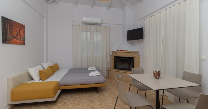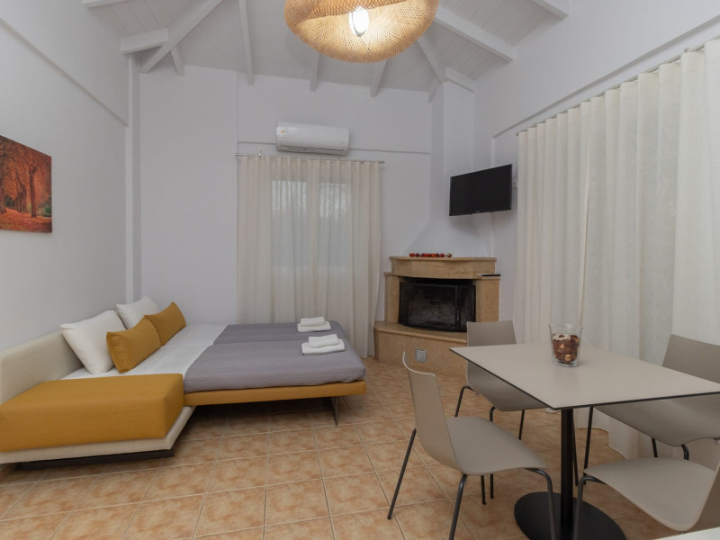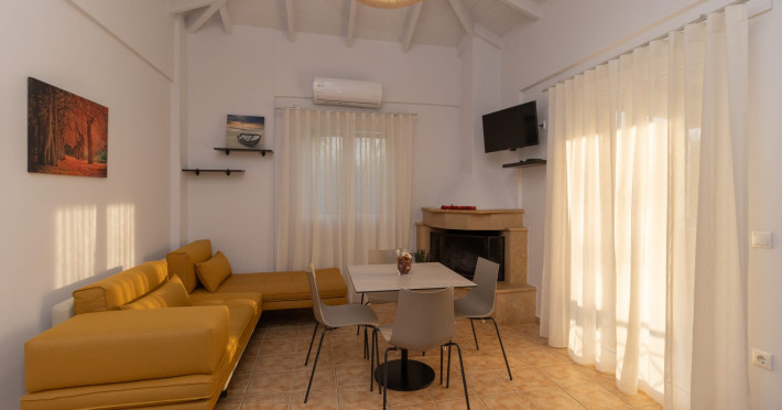 Our touristic business consists of seven, autonomous houses that provide you with complete independence. They have two rooms and are of a total area of 45 square meters. They consist of a bedroom, a living room with a fully equipped kitchen, a bathroom, washing machine and a large spacious balcony for unique, relaxing and refreshing mornings, afternoons, or evenings. Also for winter travelers, the fireplace gives its own distinctive tone to each apartment. We are located at Lagouvardos, Messinia, 4 km from Marathopolis and 700 meters from Lagouvardos beach, 21 km from Gialova and Costa Navarino. All residences can accommodate every visitor who is looking for moments of aesthetics and quality. Each apartment has a distinctive style and finesse to provide you with a warm atmosphere making your stay enjoyable and unforgettable. Fully Equipped Kitchen, Bathroom, washing machine, Fireplace, Air Conditioning, Toilet, Balcony, LCD TV.Datorita dinamicitatii domeniului disponibilitatea ofertelor se modifica de la un moment la altul. De aceea ofertele sunt valabile in limita locurilor disponibile. Agentia nu este responsabila pentru eventualele neconcordante care pot aparea intre informatiile privind tarifele si alte detalii din site si informatiile primite in agentie. In aceste cazuri vor avea prioritate, intotdeauna, informatiile primite in agentie.